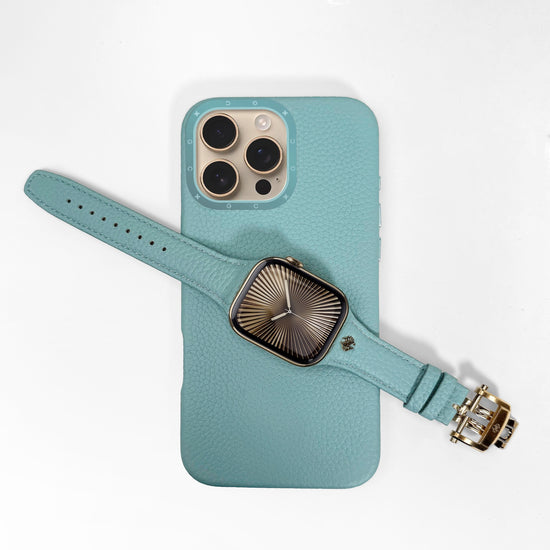 The Apple Watch straps are tailored for 40mm, 41mm, and 42mm models, designed for a smaller, more elegant fit. Each strap is lined with soft lamb leather and finished with an 18K gold PVD-plated butterfly buckle. The matching iPhone 16 cases are wrapped in full-grain calf leather, featuring an anodized aluminium camera frame engraved with the GC monogram. Fully MagSafe compatible, they balance luxury with everyday function.