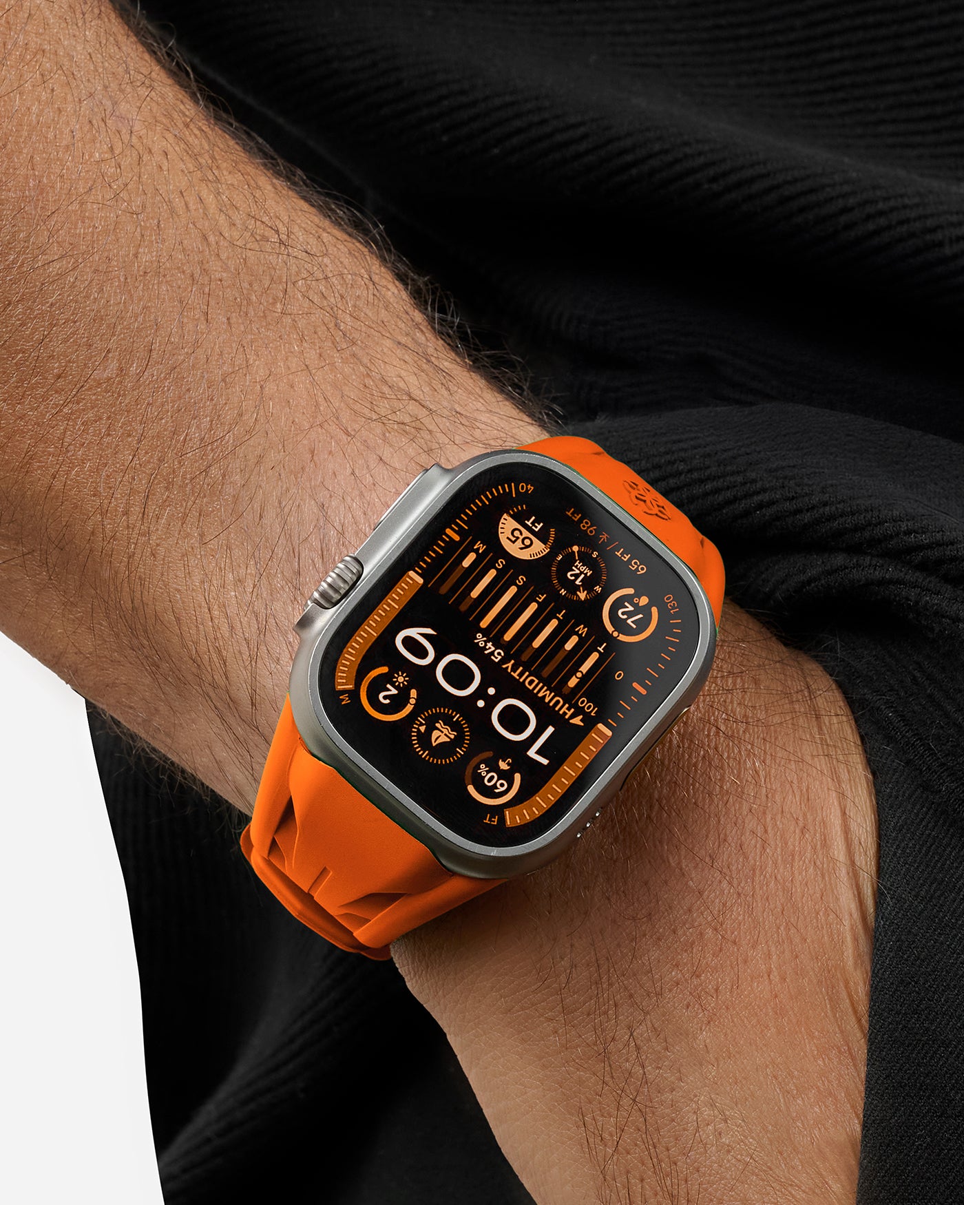 Upgrade your Apple Watch with Golden Concept's premium straps. Meticulously crafted for quality and style, these straps transform your watch into a statement piece. In addition to our timeless collections in stainless steel, we are excited to introduce an extention of colors in the Evening Edition, and two new collections: the Racing Sport, made from durable fluoroelastomer, and the Leather Edition, crafted from premium Italian calfskin. Elevate your Apple Watch with high-end sophistication and versatility.