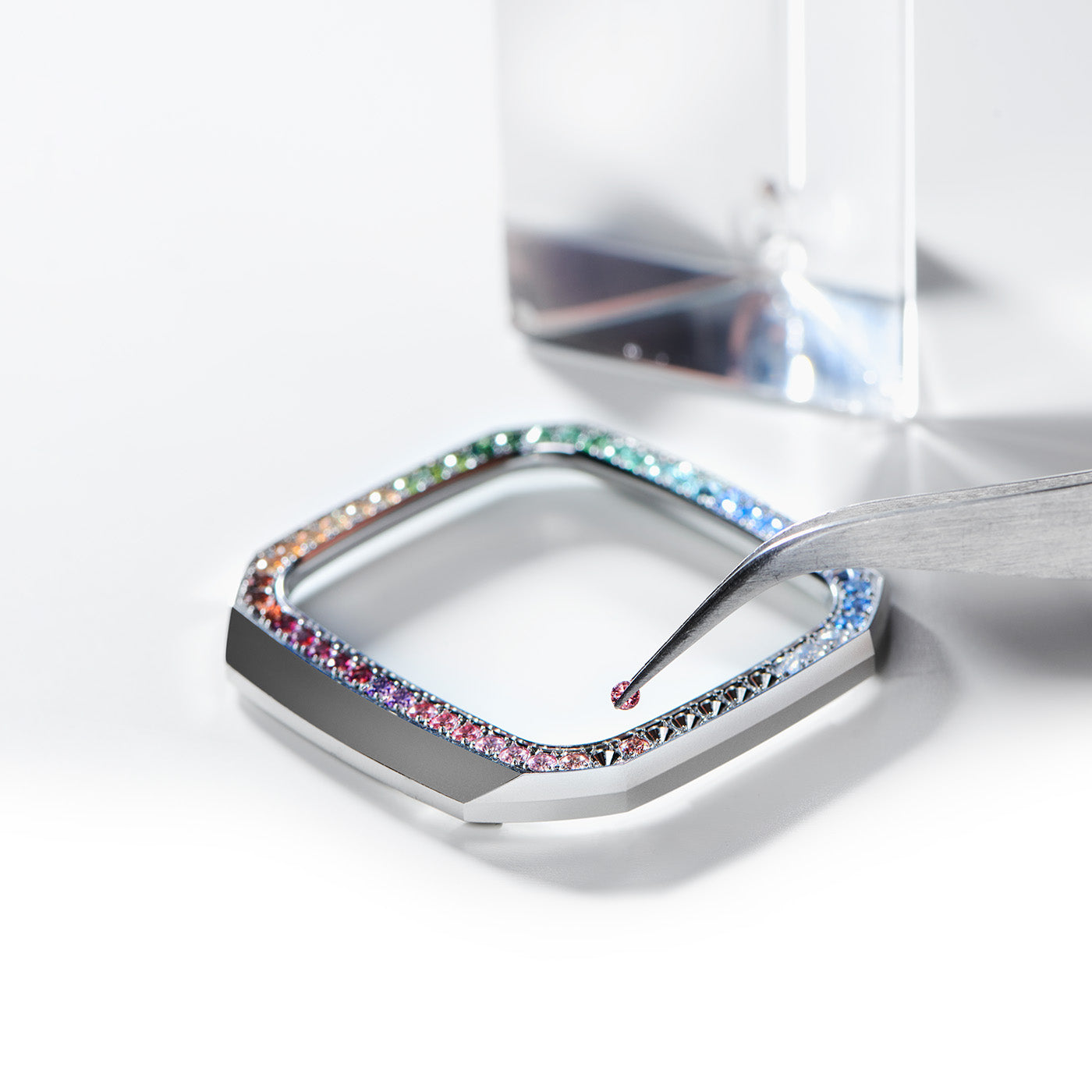 Presenting Rainbow Frosted: a breathtaking blend of rainbow hues and sleek design, adorned with Swarovski® Zirconia crystals for unmatched sophistication. With just 99 pieces available worldwide, each bearing a unique engraved number, this watch epitomizes exclusivity and timeless allure. Elevate your style with Rainbow Frosted and make an enduring statement of glamour.