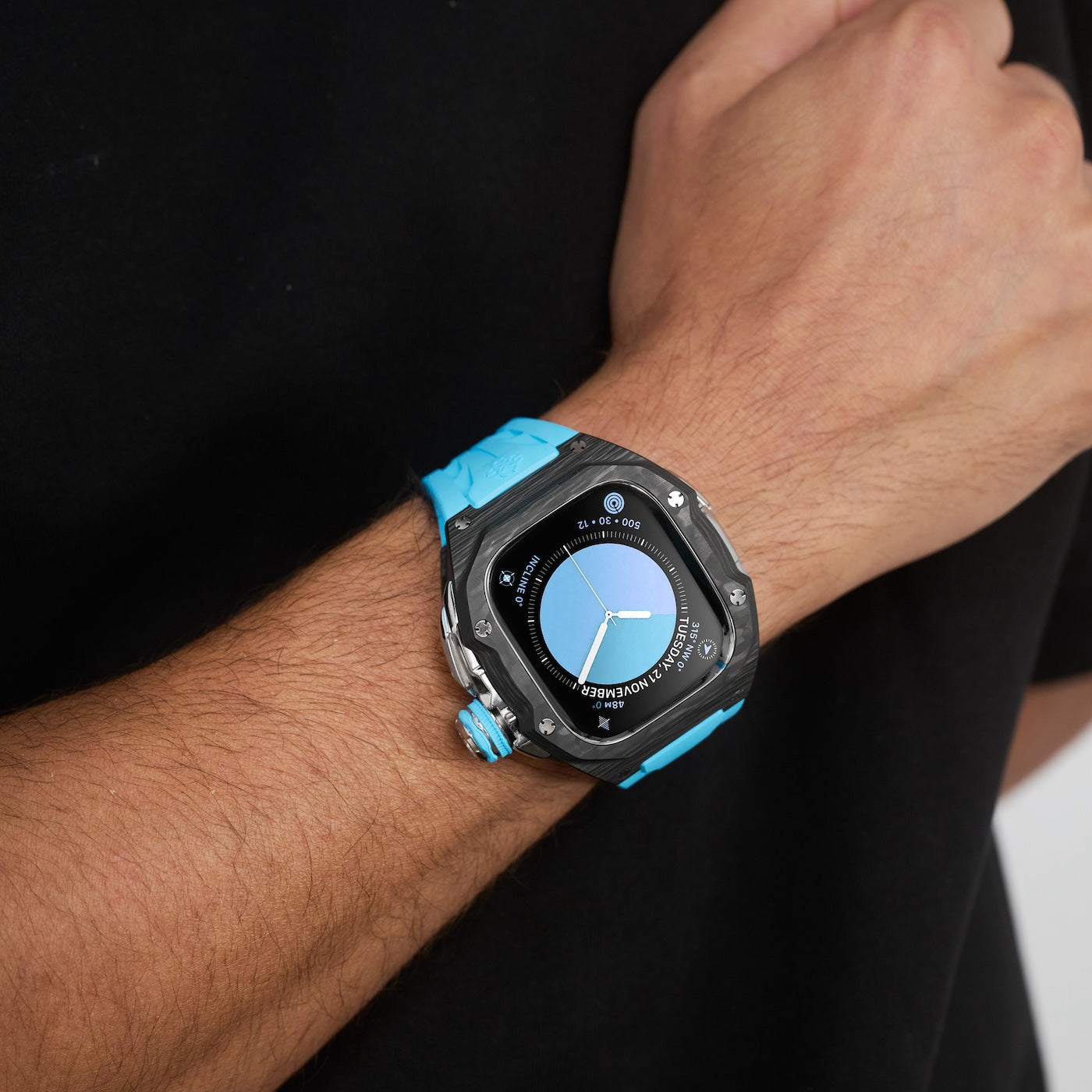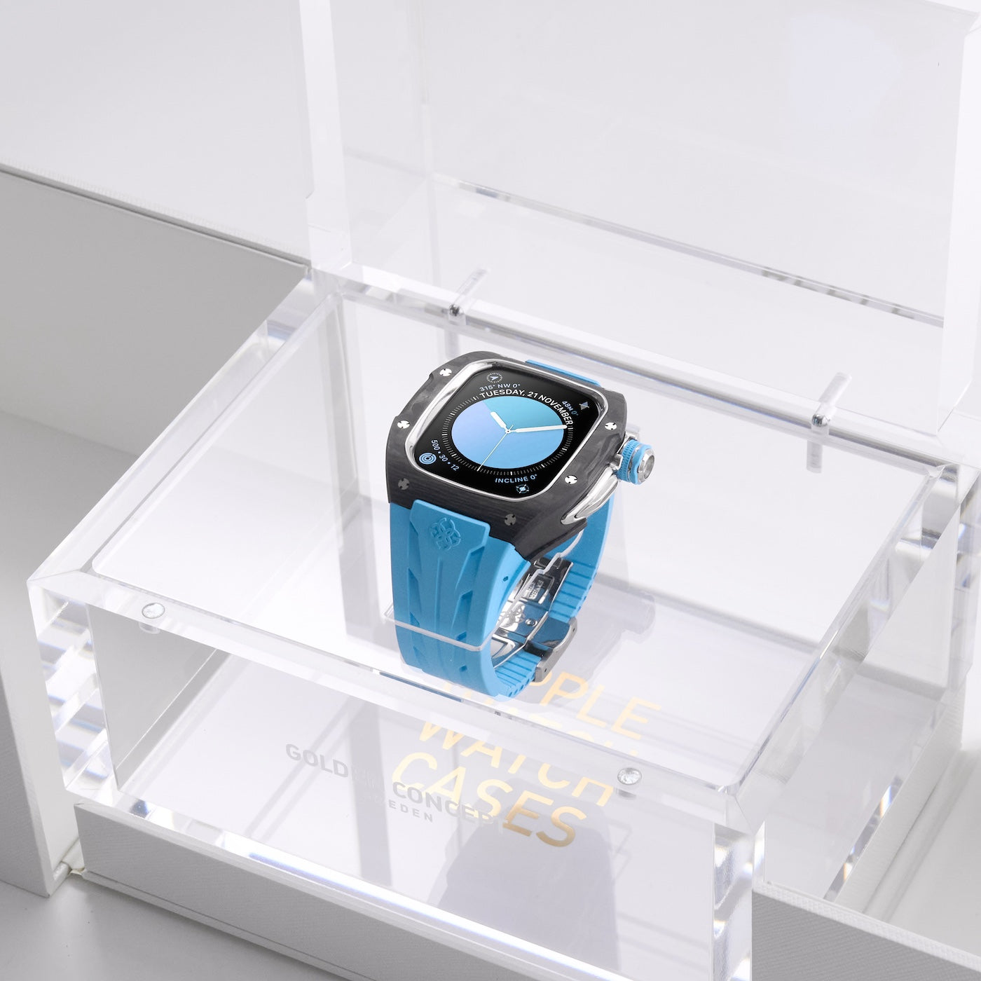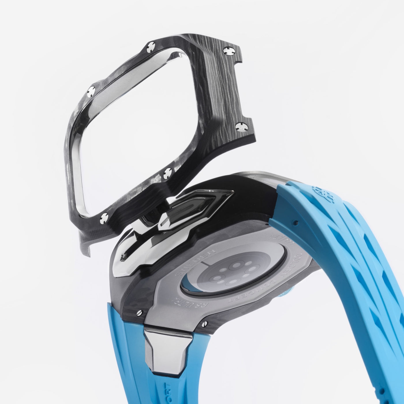 A striking evolution of the Racing Sport Carbon. Its matte Carbon surface shows unique patterns from carving pressed carbon, enhanced by polished silver accents. Finished with a vibrant blue strap for sharp contrast, this watch combines tough, race-inspired durability with sleek design, ready to keep up with you anywhere.