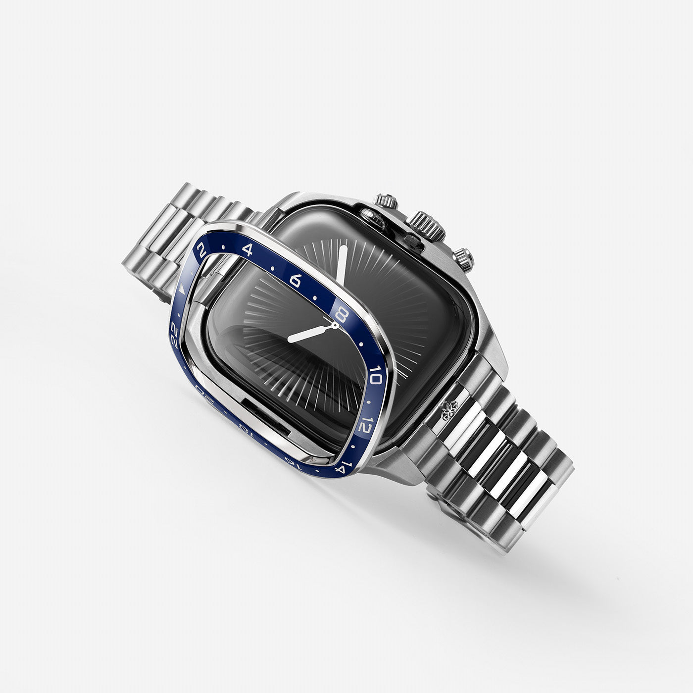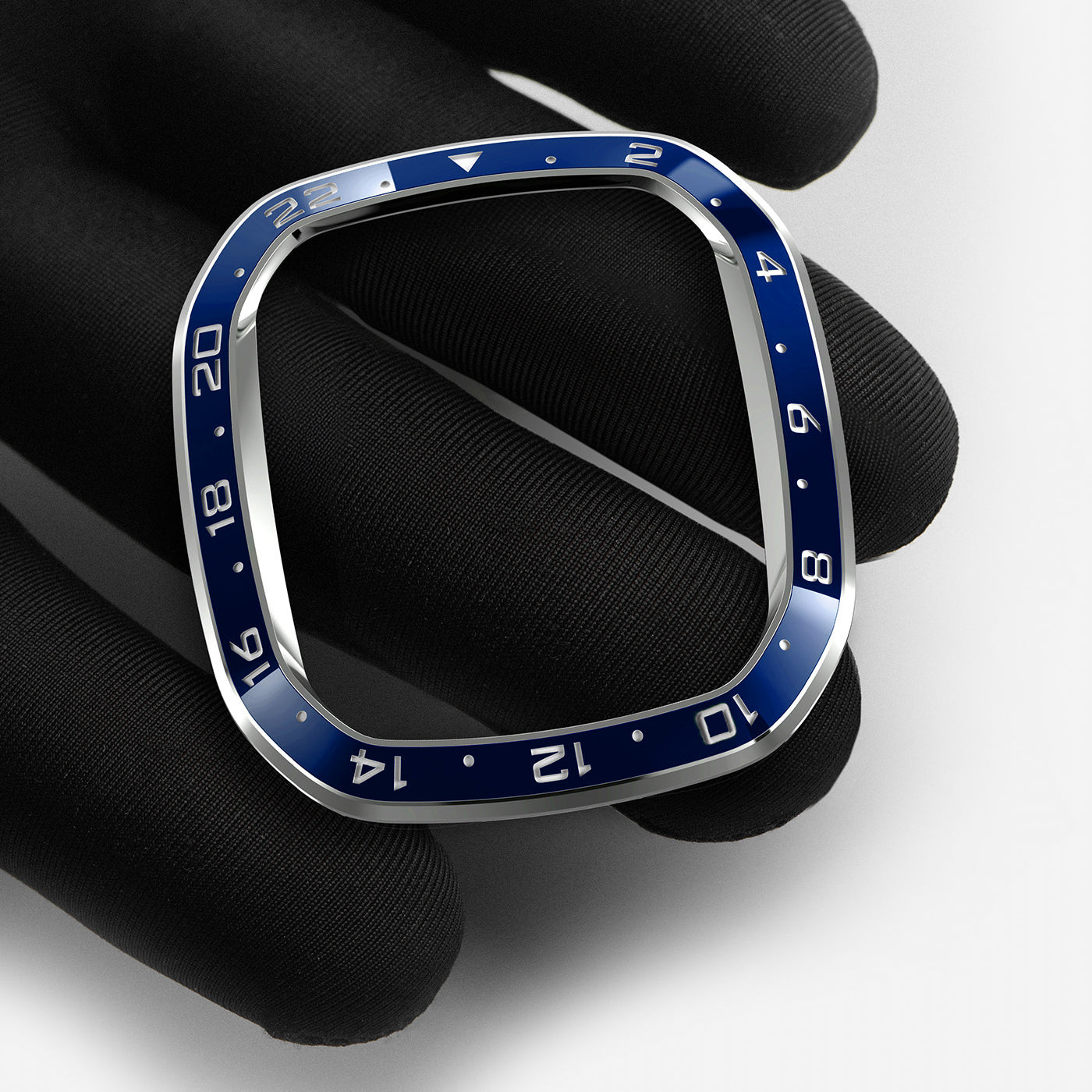 The bezel, crafted from premium ceramic, features a refined, polished finish in a vivid and striking blue that draws the eye. Skilled artisans meticulously engrave and hand-paint each detail, ensuring every piece is truly unique. The result is a piece that feels reminiscent of traditional watchmaking, reimagined for the Apple Watch.