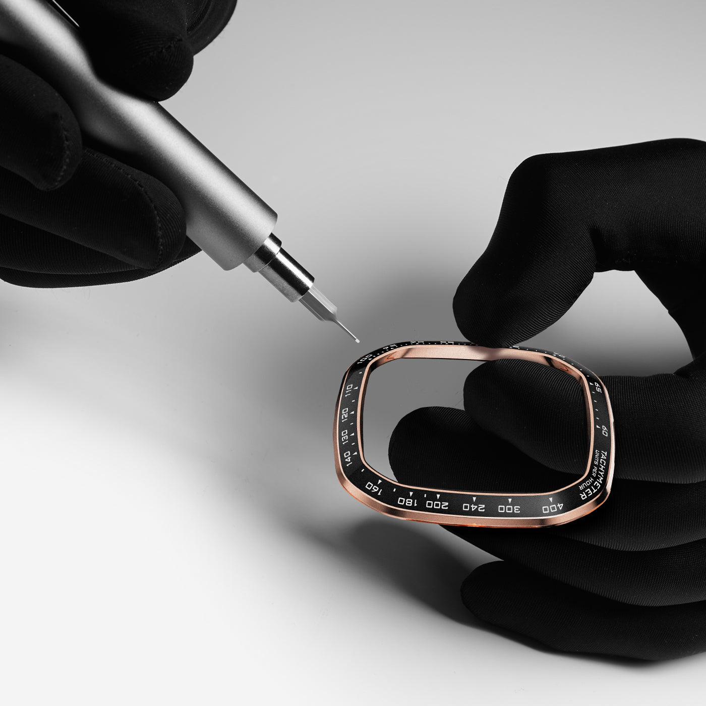 The bezel is made from high-quality ceramic, giving it a sleek and polished look. Each text and design is carefully engraved and hand-painted by skilled craftsmen, making every piece unique. The result is a beautifully crafted timepiece that combines elegance with exceptional quality.