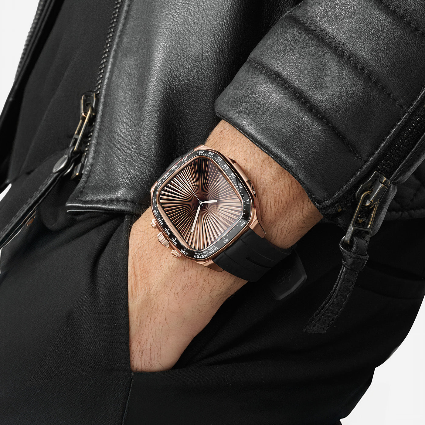 The Crown Edition redefines the traditional watch case with a bold design shift, relocating the crown to the center of the right side for enhanced aesthetics and functionality. This elegant timepiece redefines luxury, elevating style and sophistication to new heights.