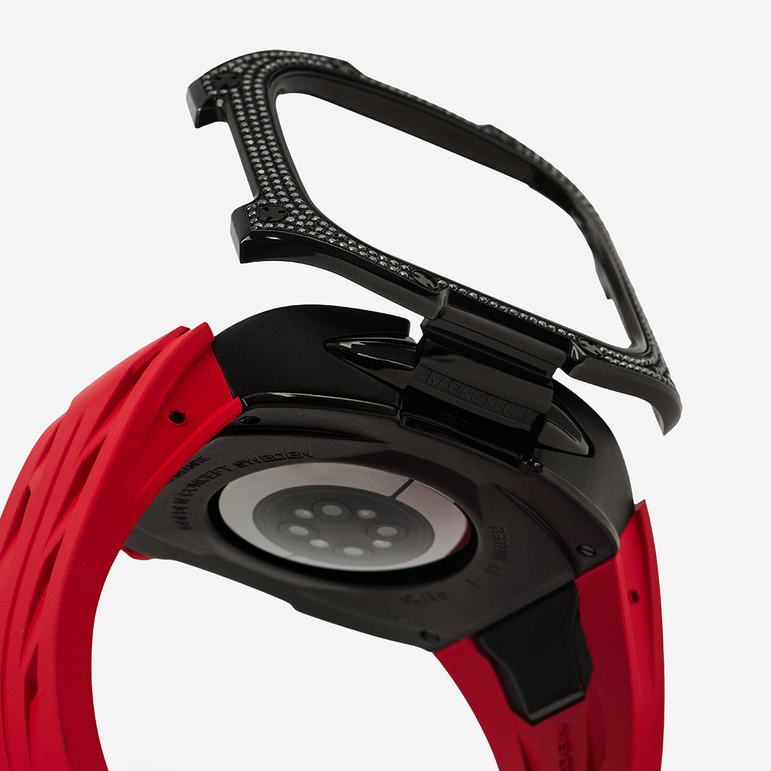 The Racing Sport Edition redefines convenience with its patented Hatch-Bezel® technology. This groundbreaking design allows for the effortless installation and removal of your Apple Watch at the push of a button.