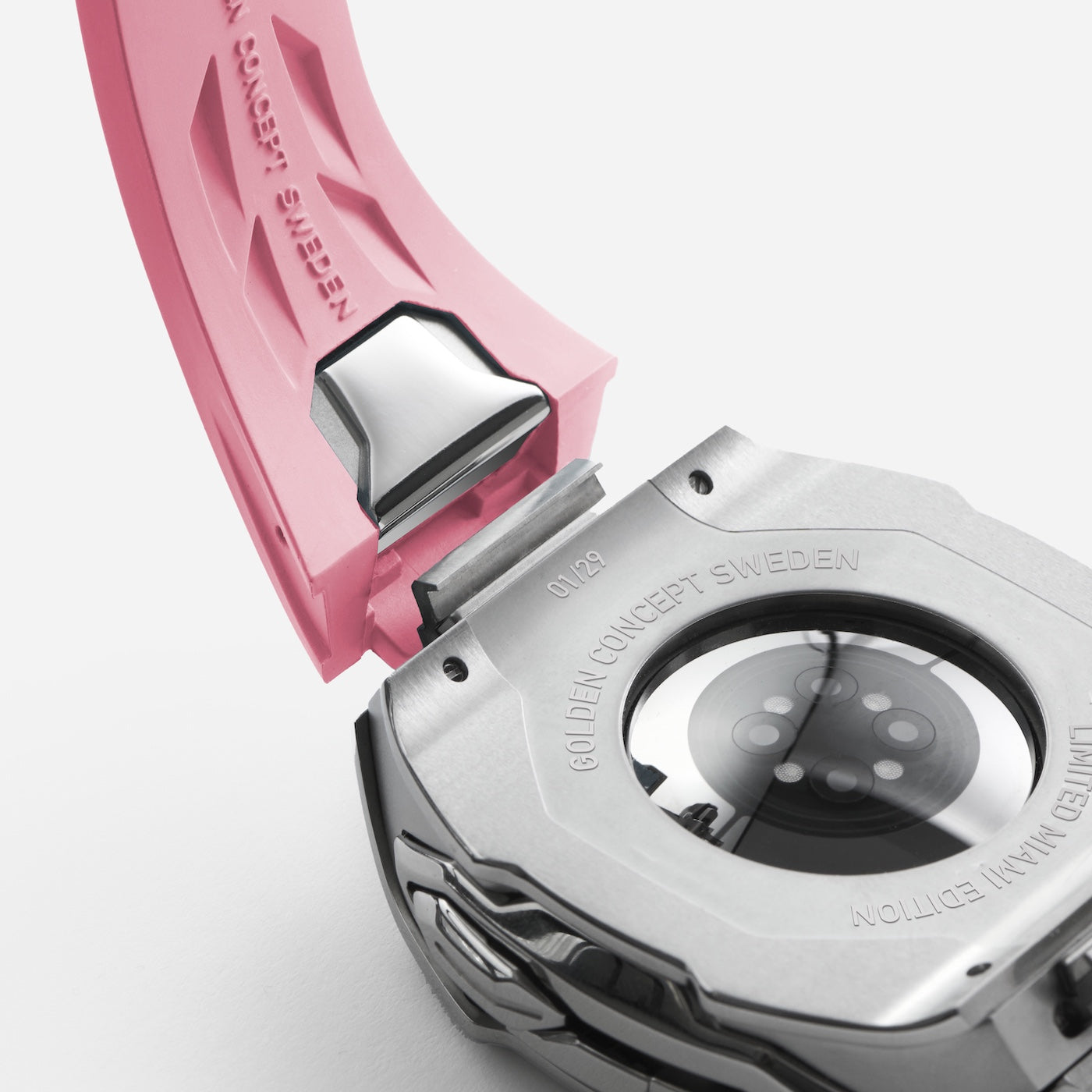 The Miami Edition features the patented Hatch-Bezel® technology. This groundbreaking design allows for the effortless installation and removal of your Apple Watch at the push of a button.
