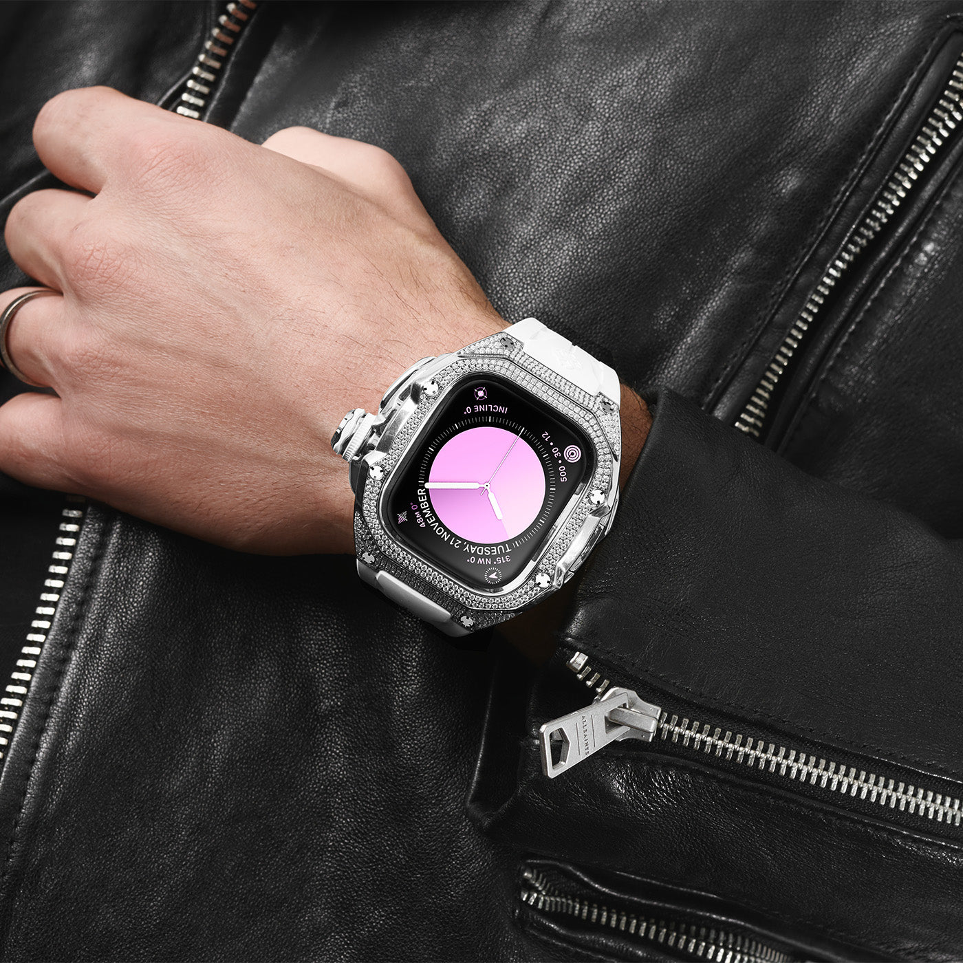 Crafted for those who appreciate meticulous detail, the Snowflake Edition elevates your Apple Watch Ultra with the timeless elegance of rose gold casing and a pristine white strap. Born from exquisite craftsmanship, this edition exudes sophistication and refinement. Unlike traditional diamonds, the Snowflake offer a captivating allure that enriches the allure of your device, ensuring it stands out with unparalleled charm and style.