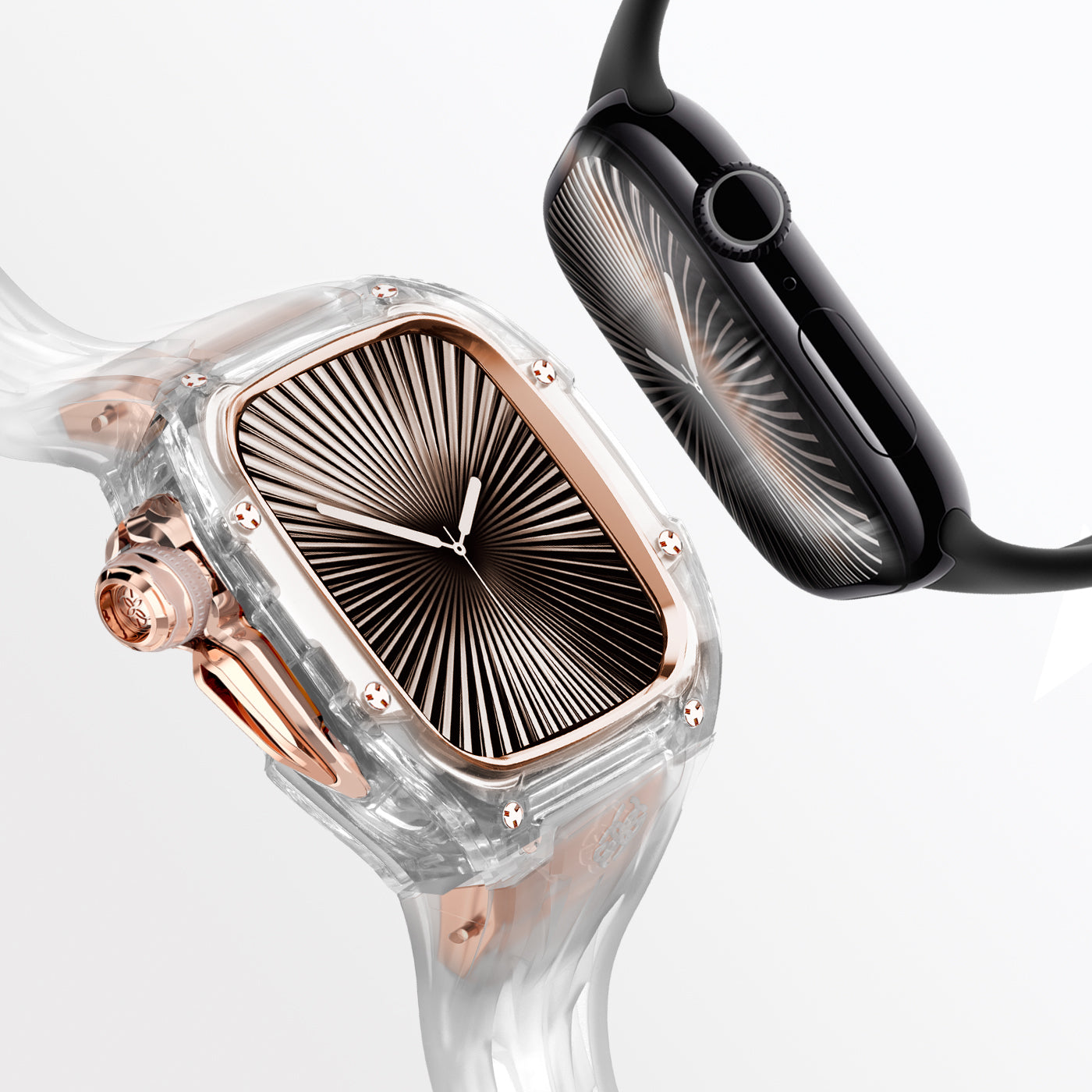 Crafted for Apple Watch Series 10 and 11, this case embodies precision and innovation. Its transparent design, accented with rose gold stainless steel elements, seamlessly enhances your Apple Watch—elevating both form and function with a striking, refined elegance.