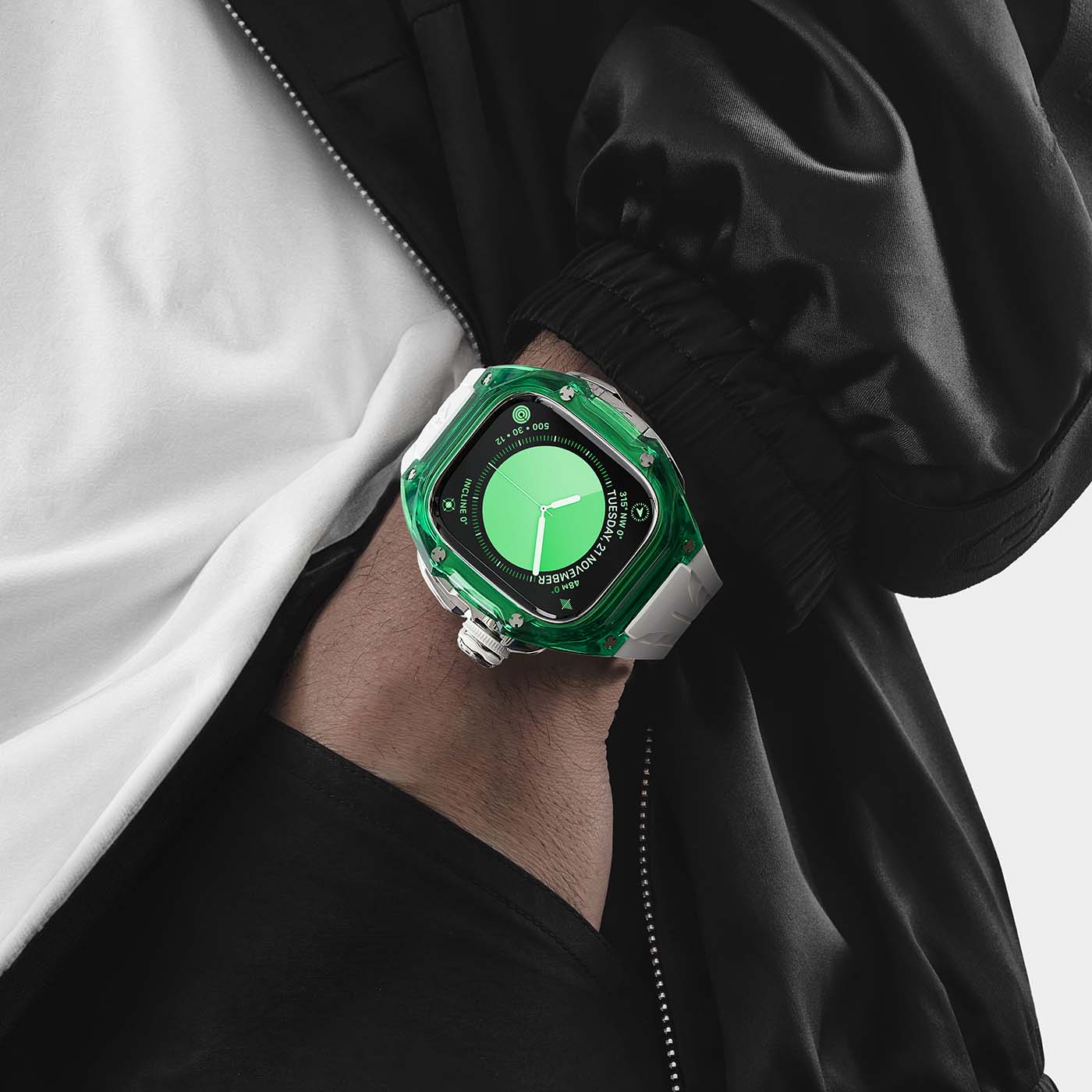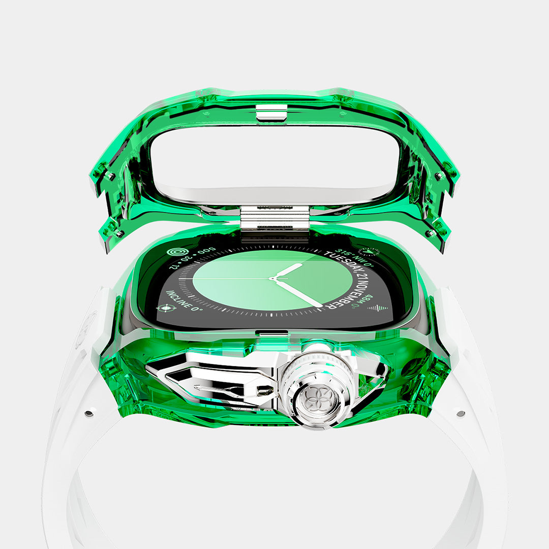 This intricate design now features 57 precision parts, meticulously crafted from transparent nylon to resemble the brilliance and clarity of a large gemstone. The innovative material mimics the appearance of a sparkling stone, giving your Apple Watch Ultra an elegant and luxurious look.