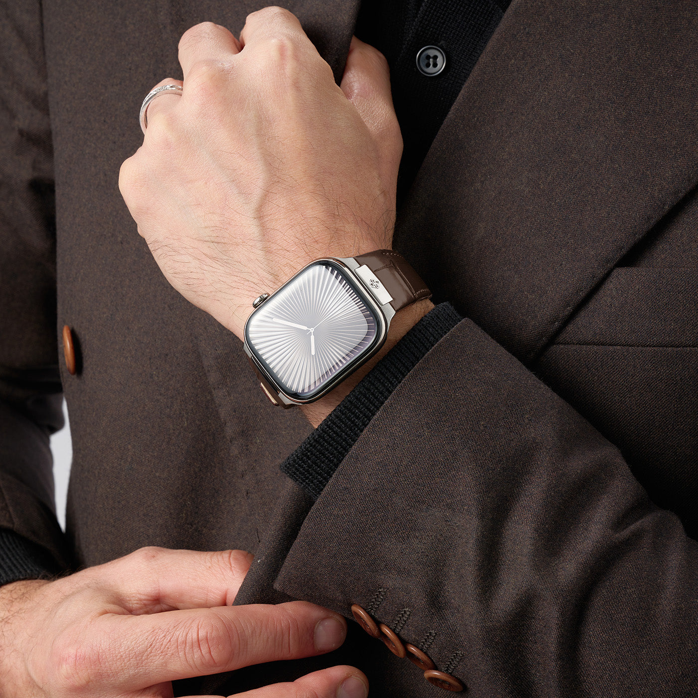 Our alligator leather strap is designed for seamless compatibility with Apple Watch models 44mm, 45mm, 46mm, and 49mm. With a simple, secure snap, it effortlessly attaches, allowing you to elevate your watch with ease - no tools, just pure luxury.