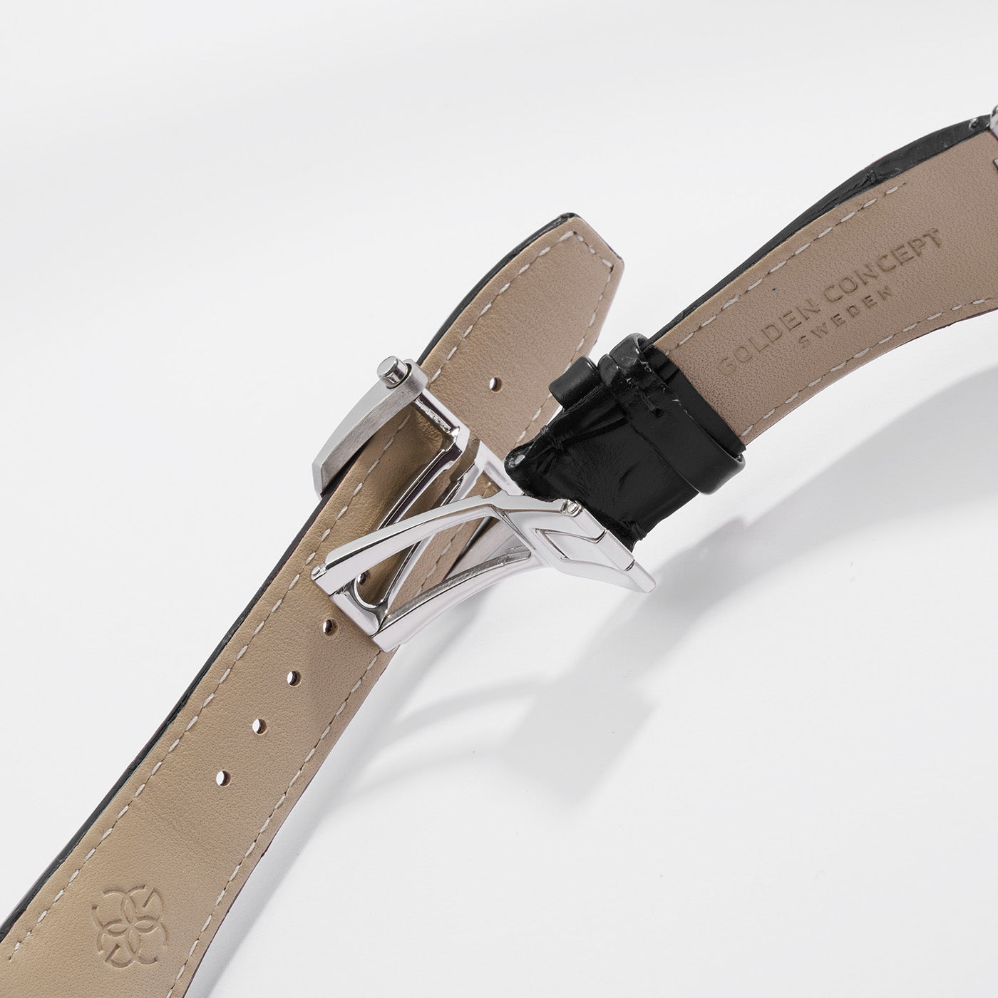 Equipped with a sleek butterfly buckle, this strap offers a secure and polished closure. Its seamless design ensures a comfortable fit, delivering both style and practicality for a distinguished look.