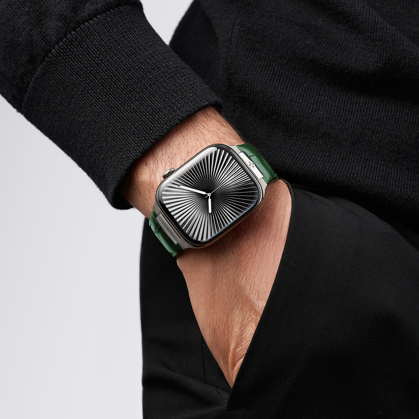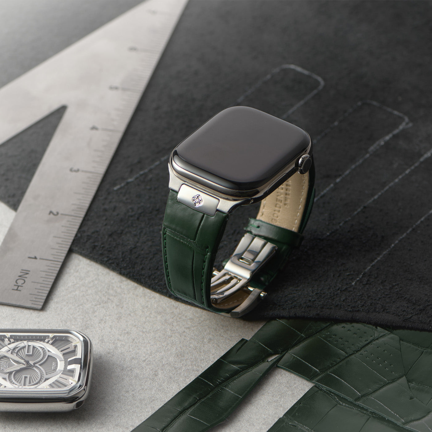 Our alligator leather strap is designed for seamless compatibility with Apple Watch models 44mm, 45mm, 46mm, and 49mm. With a simple, secure snap, it effortlessly attaches, allowing you to elevate your watch with ease - no tools, just pure luxury.