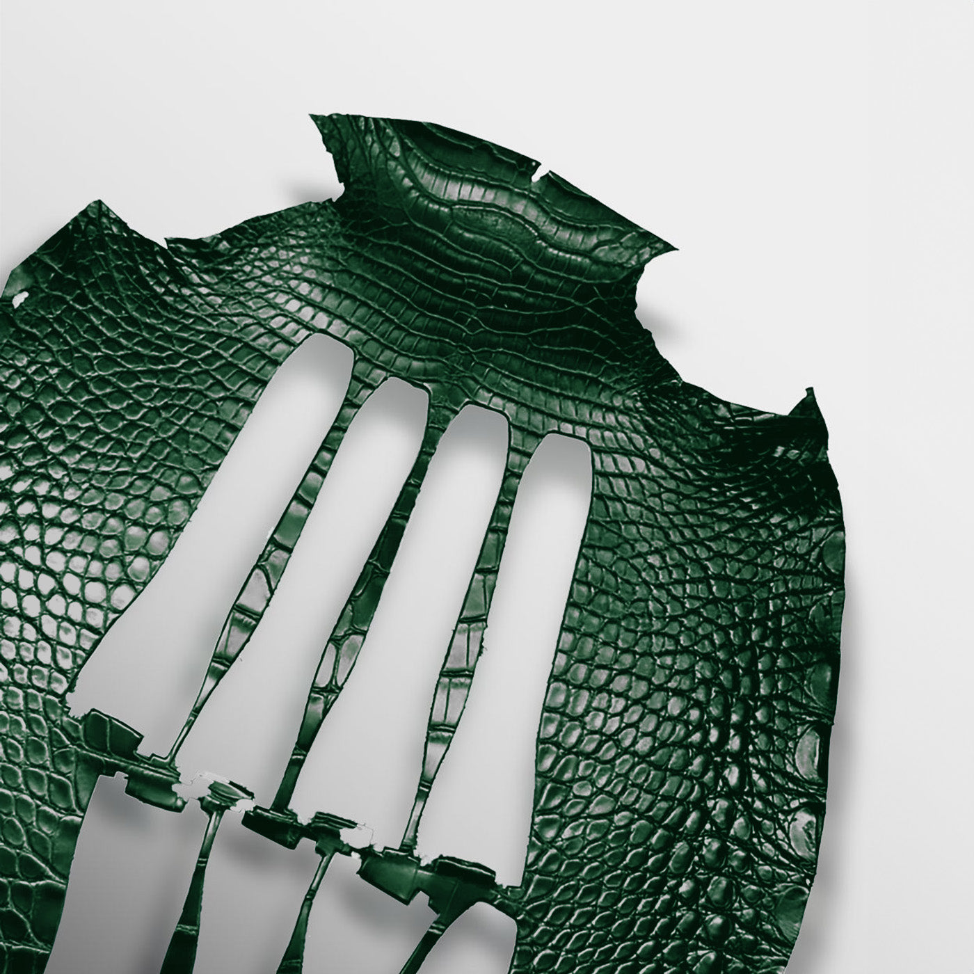Sourced from the prestigious wetlands of the Mississippi, our genuine alligator leather is known for its distinct, symmetrical scale patterns. Each hide is handpicked for its natural beauty and exceptional durability, ensuring a luxurious finish that develops a rich patina over time.