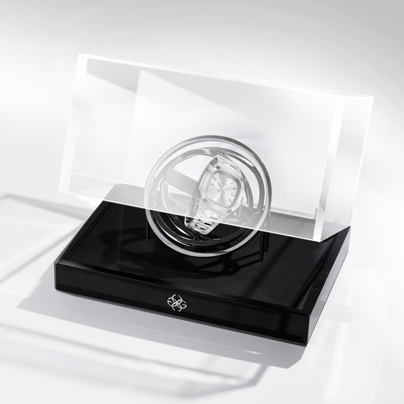 Included with every timepiece, the watch winder keeps the movement alive through a gentle and continuous motion. It ensures the watch is always ready, always in its rhythm. Formed with clear surfaces and architectural lines, it stands as an interior object of calm expression, giving the watch a space to move, reflect, and simply exist.