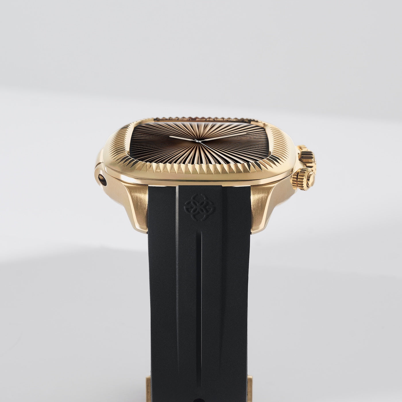 Resilient yet flexible, the fluoroelastomer strap offers lasting comfort, conforming naturally to the wrist while resisting heat, moisture, and daily wear. The butterfly buckle combines a brushed steel finish with polished facets, centered by an engraved GC logo and comes in PVD-plated 18K gold, rose gold or silver to match your Crown Edition case.
