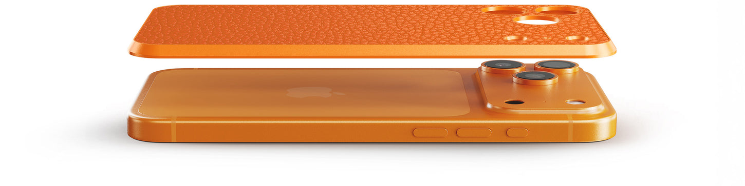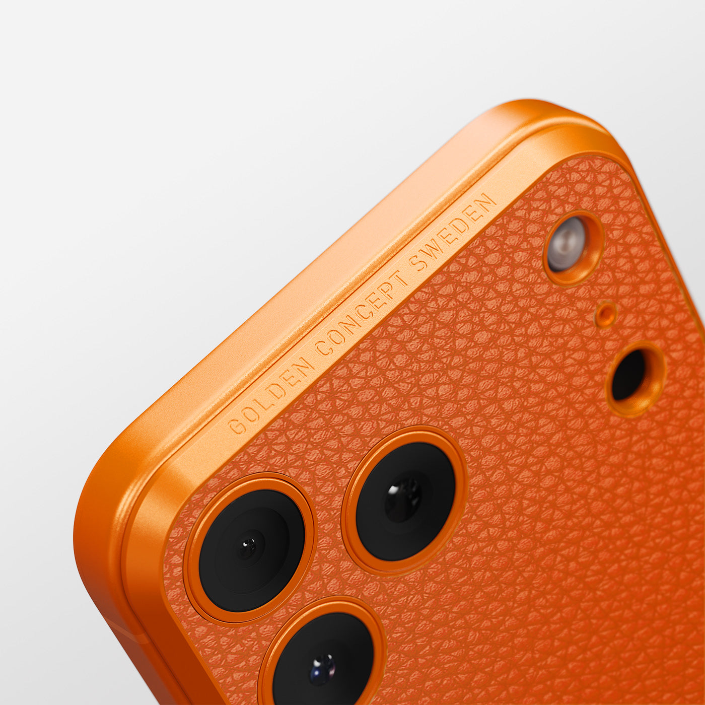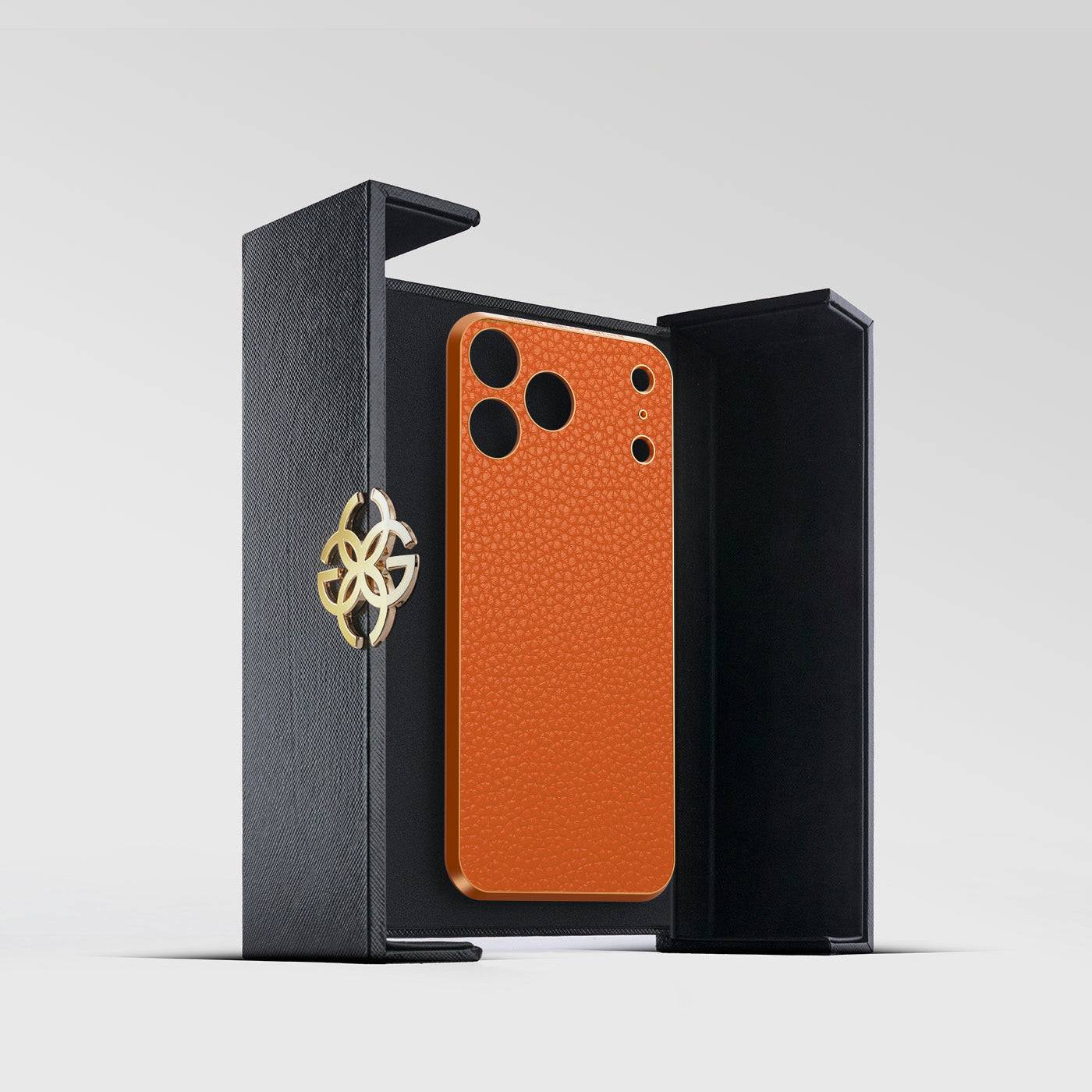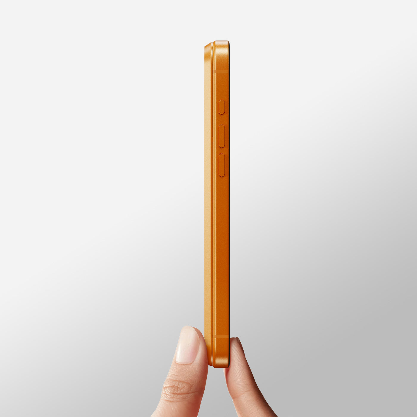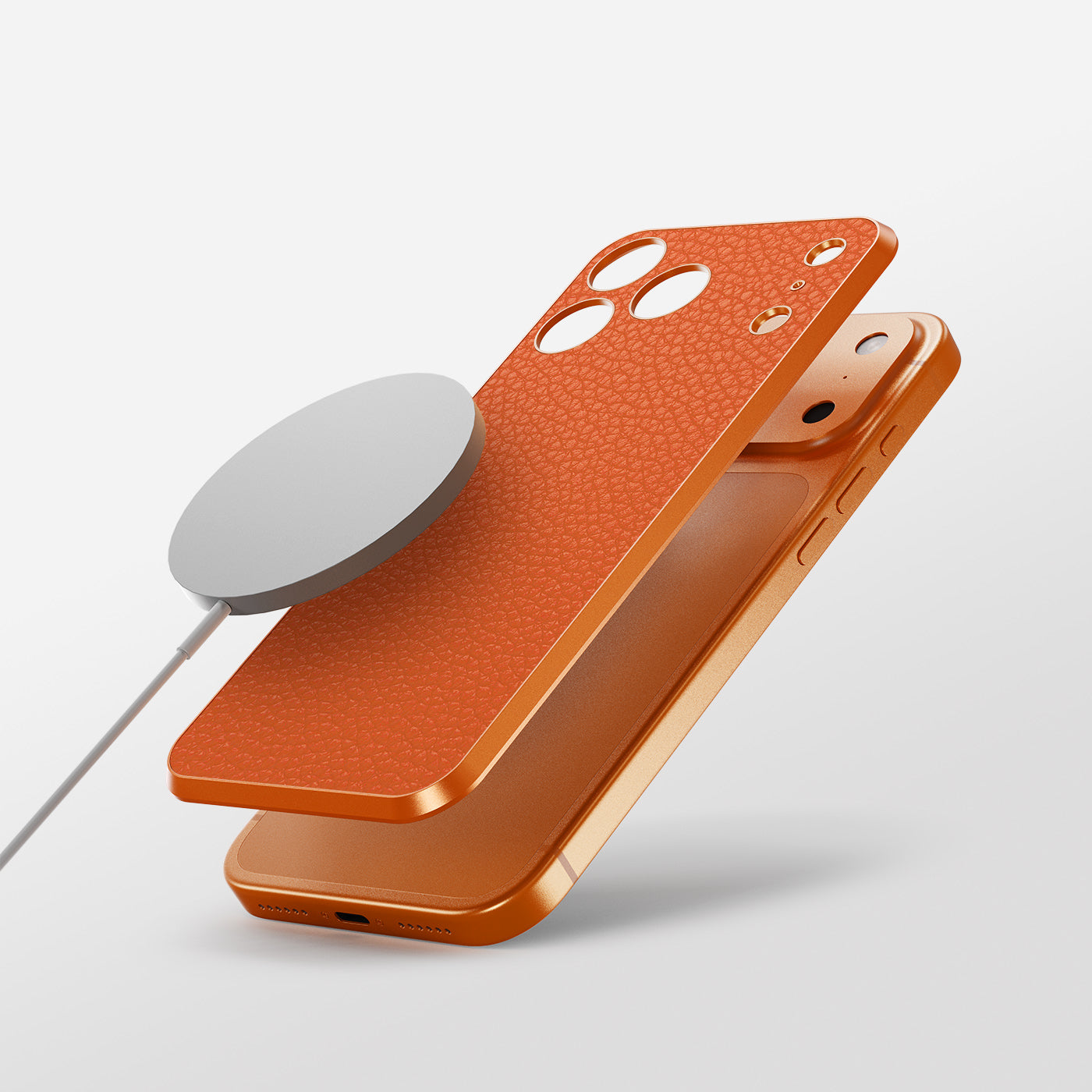 The color is carefully matched to Apple’s latest iPhone Pro Cosmic Orange finish, creating visual harmony between case and device. Smooth to the touch yet rich in natural character, the leather adds depth and tactility while maintaining the phone’s slim profile.