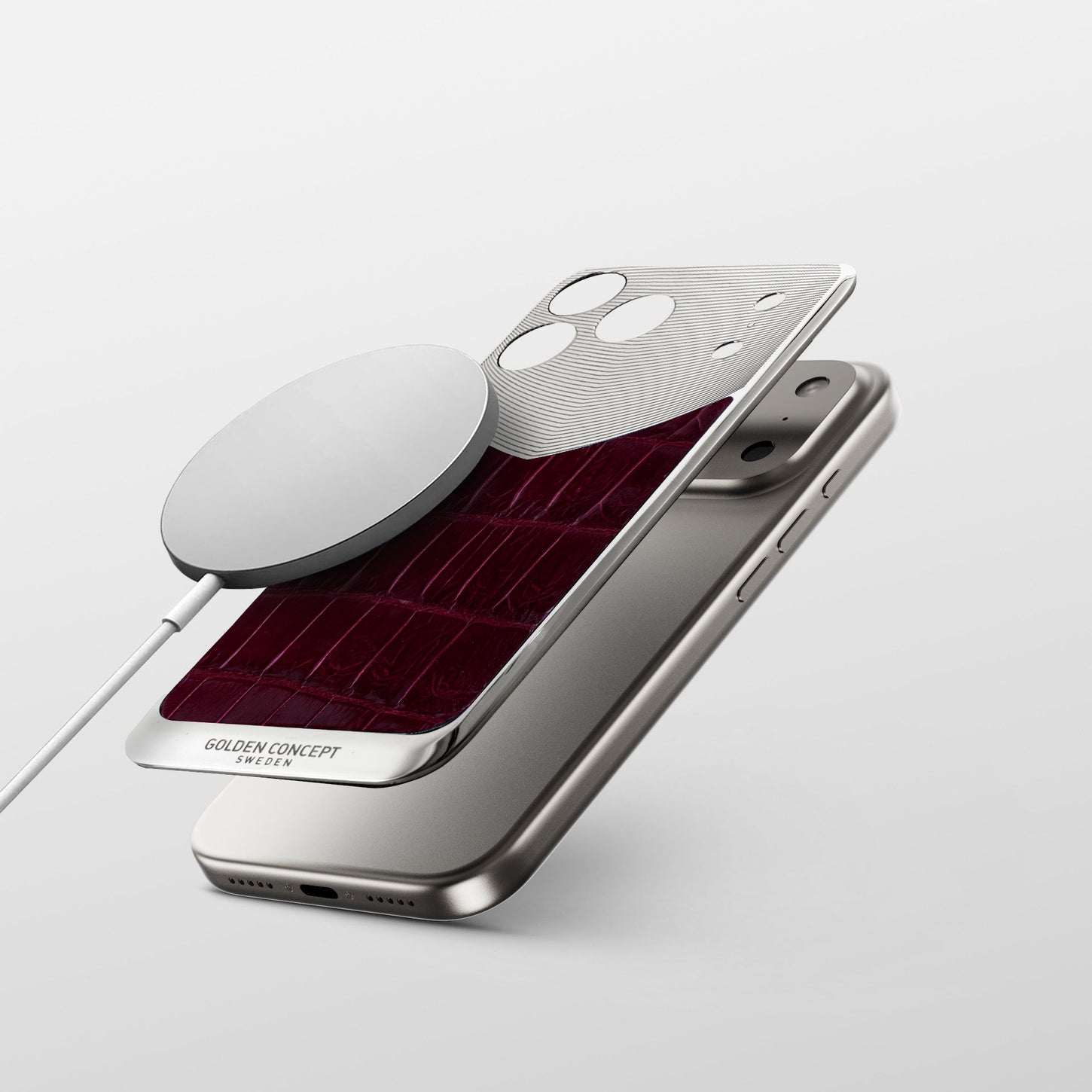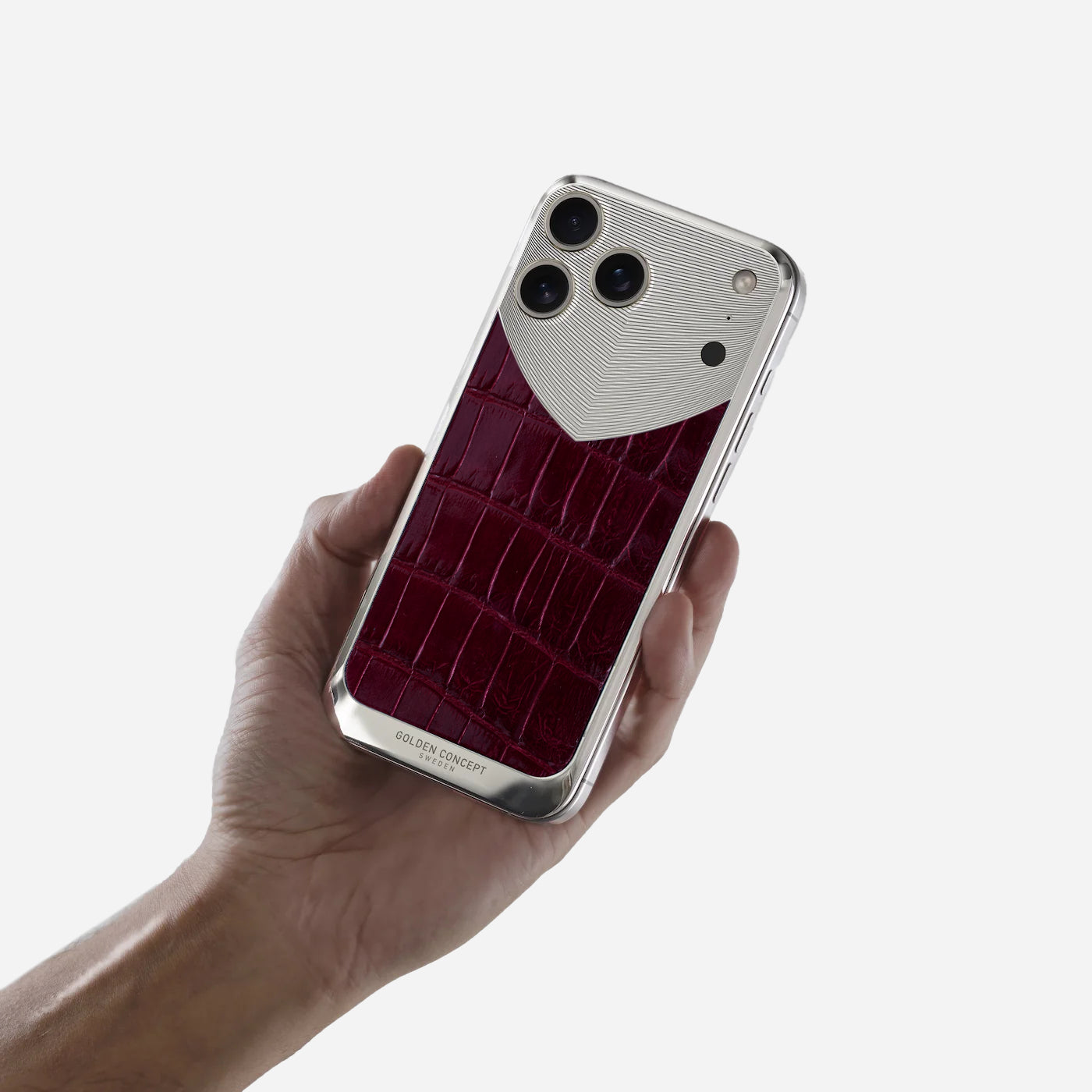 Made for iPhone 17 Pro, Pro Max, and iPhone 17 Air, the Glossy Maroon Alligator Edition pairs genuine Mississippi alligator leather with a polished stainless steel backplate. The contrast between sculpted steel and glossy leather creates a rich, expressive surface with a confident presence.