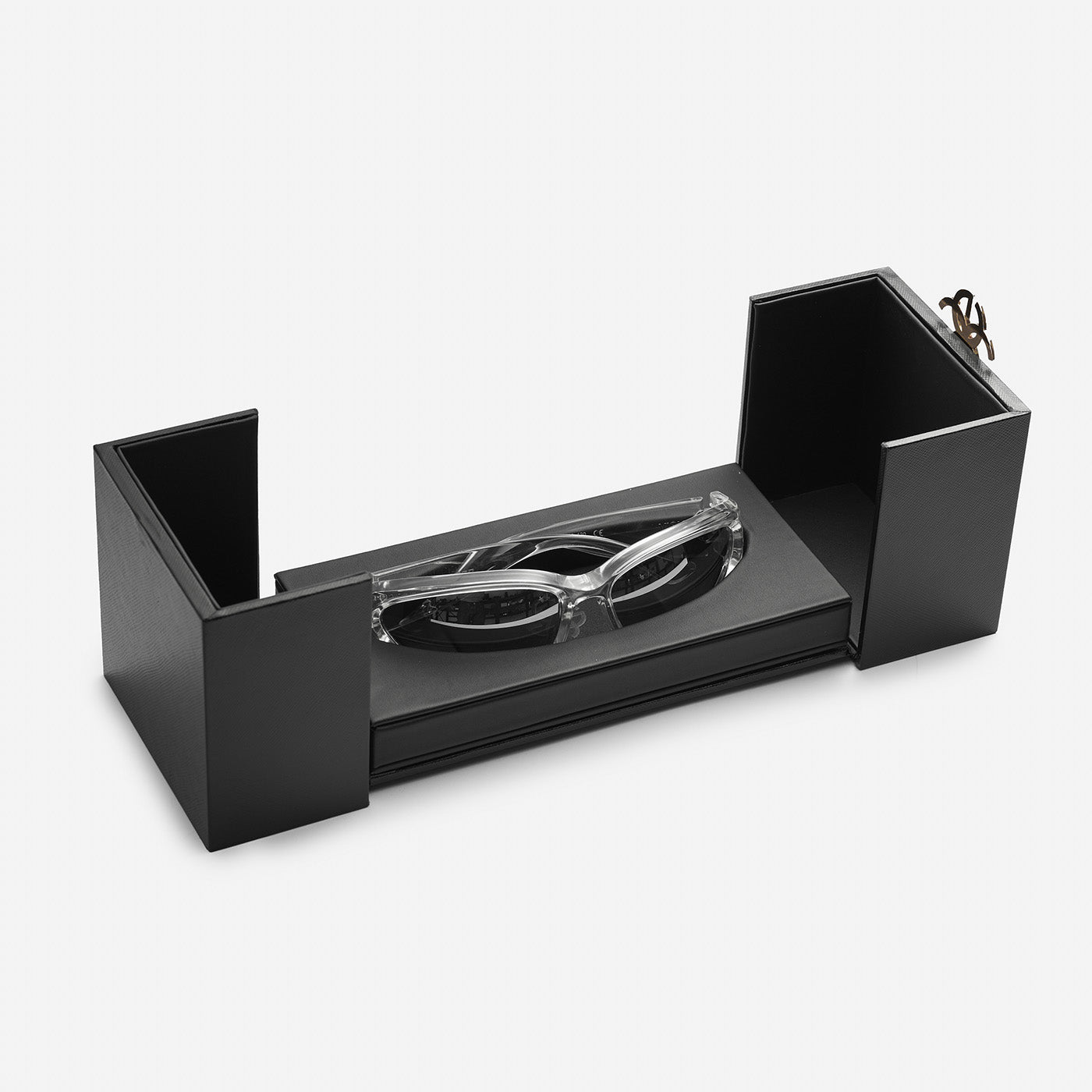 The Vision sunglasses are accompanied by a hard protective case, designed with a precise carve-out tailored specifically for the glasses. The interior is lined with soft leather, offering a luxurious feel while safeguarding your sunglasses, ensuring both style and protection in one sleek package